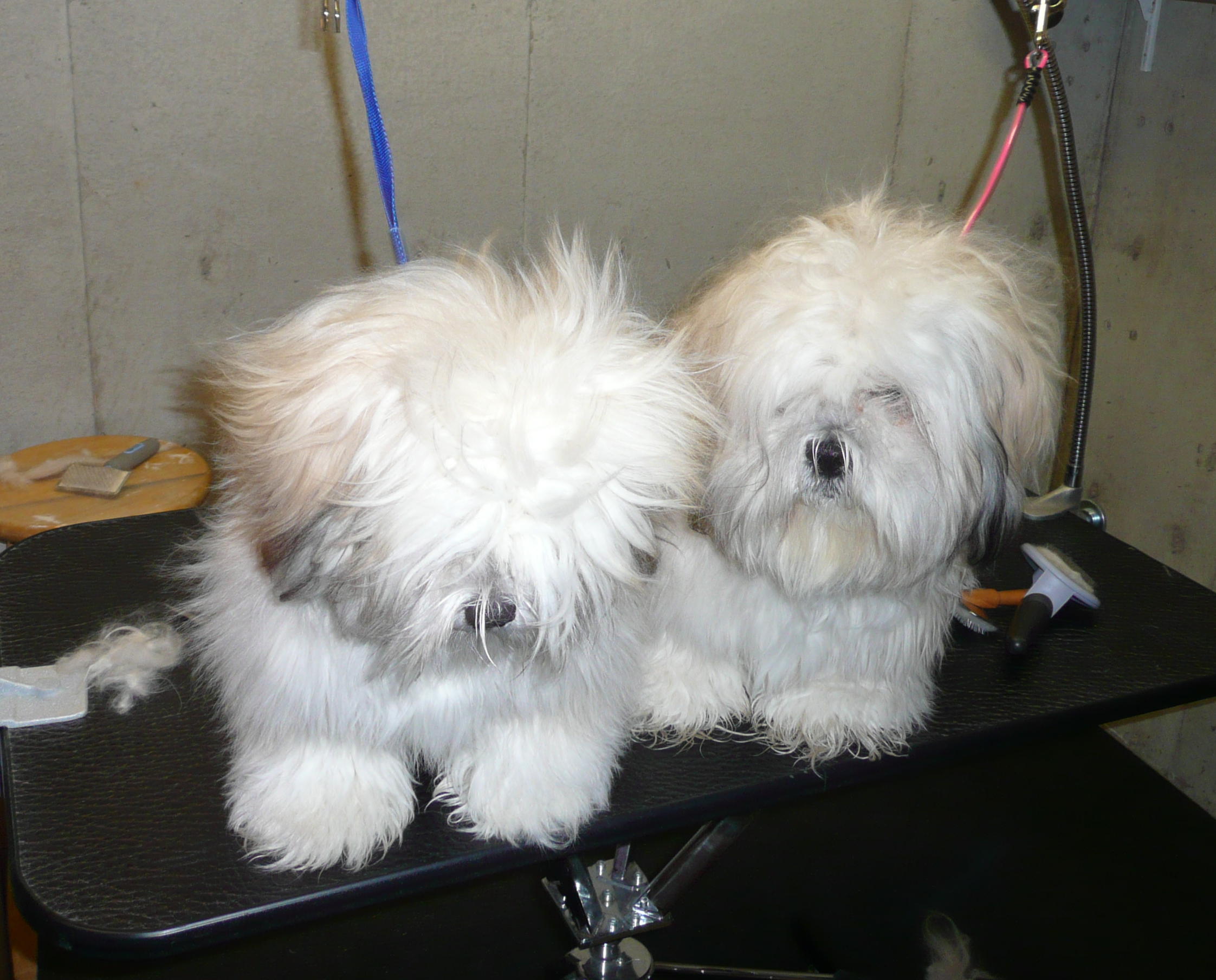 … we had two 8-month old Apsos home and clean. Not only matted but urine-soaked feet and bellies. It took three people and almost six hours to get them cleaned up. Matted to the skin in various places on their heads, muzzles and around the neck, chest and shoulders. Feces caked on the rear.