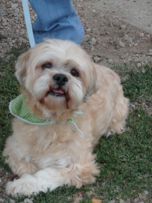 As all of my pens were out in the yard, I used a small fold-up pen that I keep in the grooming room and/or take to dog shows.  Dog shows typically have outside areas for potty runs (this works if a small venue and one can easily get to “outside”).  However, if the weather outside is bad, toileting can be an issue.  In the case of the large Denver shows, they set up penned-off areas inside, full of sawdust.  Not good for dogs in full coat … and can be a source of disease/germs.  So, we use a lightweight six-panel pen made by Mardel that’s easily transported and set up (scroll down to find the mini-exercise pens).